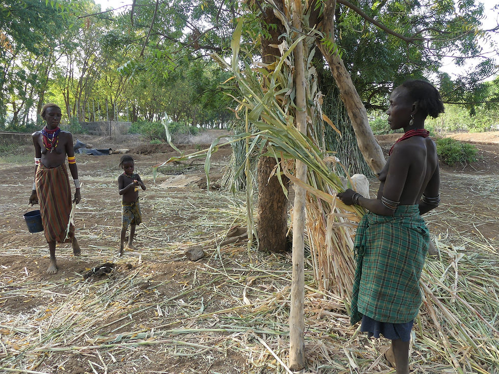 Les Mursi vivent principalement de l'élevage et habitent dans de minuscules huttes recouvertes de paille avec une seule petite entrée. On dirait des nids d'oiseaux retournés.