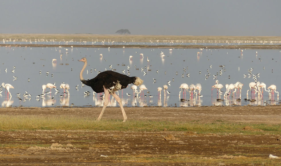 Alors que je regardais la beauté de ce lieu de silence, une grande dame élégante en robe noire est passée devant moi, sans un regard, hautaine. Je ne lui ai rien dit parce qu'elle était trop belle. Je vous présente la fière autruche massaï dans un décor surréaliste !