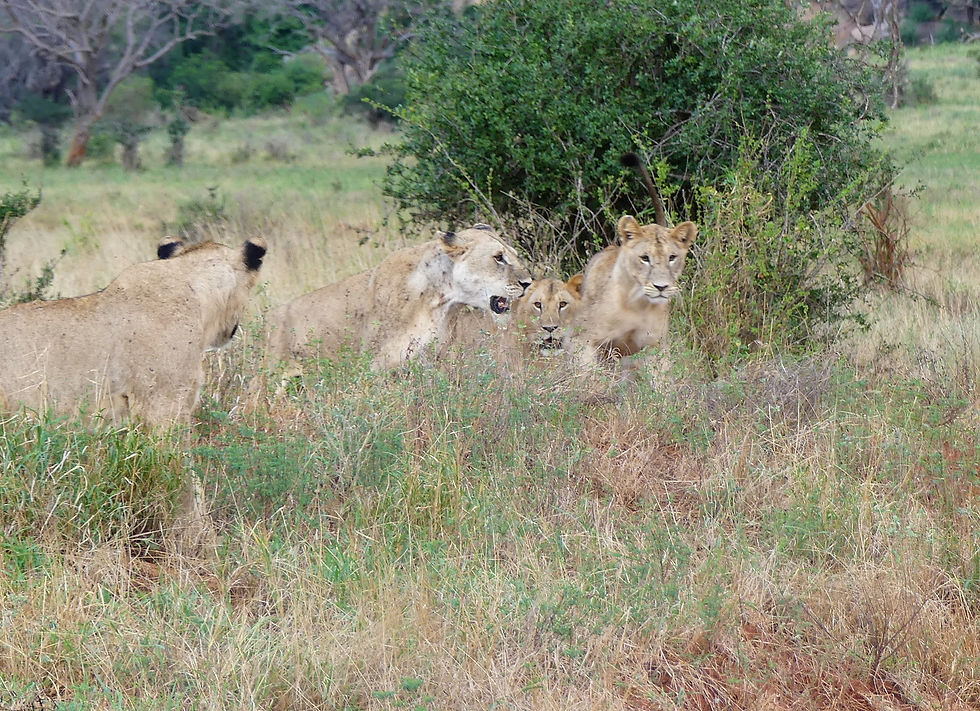 C'était en réalité un groupe de lionnes avec leurs petits. Pas vraiment des lionceaux car ils étaient déjà presque aussi grands que leurs mères. Ils sont restés dix minutes à jouer au bord de la piste, j'étais aux premières loges, abasourdi, admiratif ! Qui ne le serait pas...