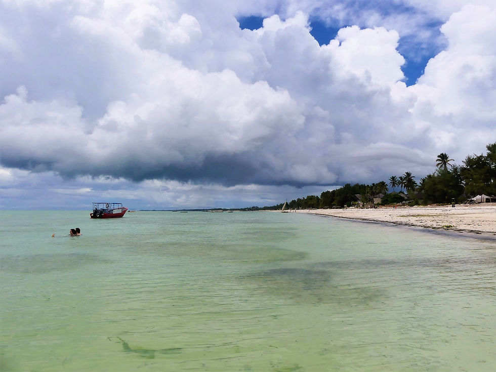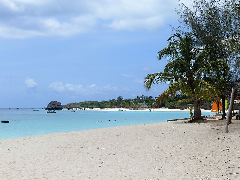 C'est une belle plage bordée de nombreux resorts aux tarifs élevés. Mais on peut loger un peu en retrait et venir se baigner dans les eaux chaudes de Zanzibar.